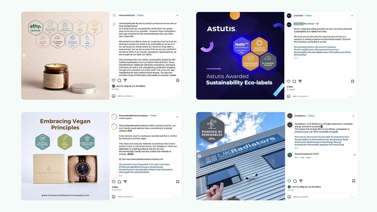 ethy's ecolabels are the ideal option for social media, where visual appeal is paramount. Embedding ecolabels in social media content instantly communicates your initiatives to a wide audience. Shareable and impactful, your ecolabels turn sustainability achievements into engaging content. They not only attract a conscientious audience but also encourage sharing, creating a ripple effect that amplifies a brand's commitment across diverse online communities.