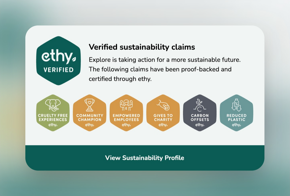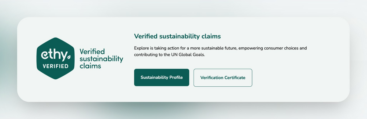 A Large card that shows your ecolabels and your ethy verified status, ideal for signposting your sustainability initiatives on your product pages.